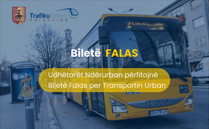 Ju njoftojmë se, sipas vendimit të datës 17.03.2025 nga Kryetari i Prishtinës, z. Përparim Rama, të gjithë udhëtarët që vijnë nga qytetet e tjera të Kosovës dhe mbërrijnë në Stacionin e Autobusëve në Prishtinë, përfitojnë falas biletën gjithëditore për transportin urban në Kryeqytet.